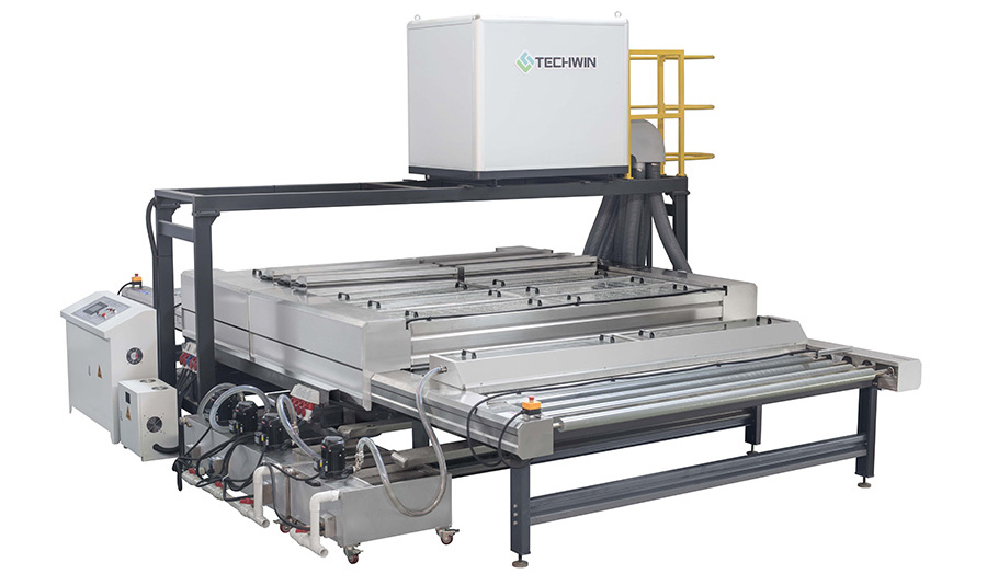 TECHWIN offers glass washers of different sizes and applications. Glass washers for appliance glass, shower enclosures, automotive glass, and architectural glass are available.